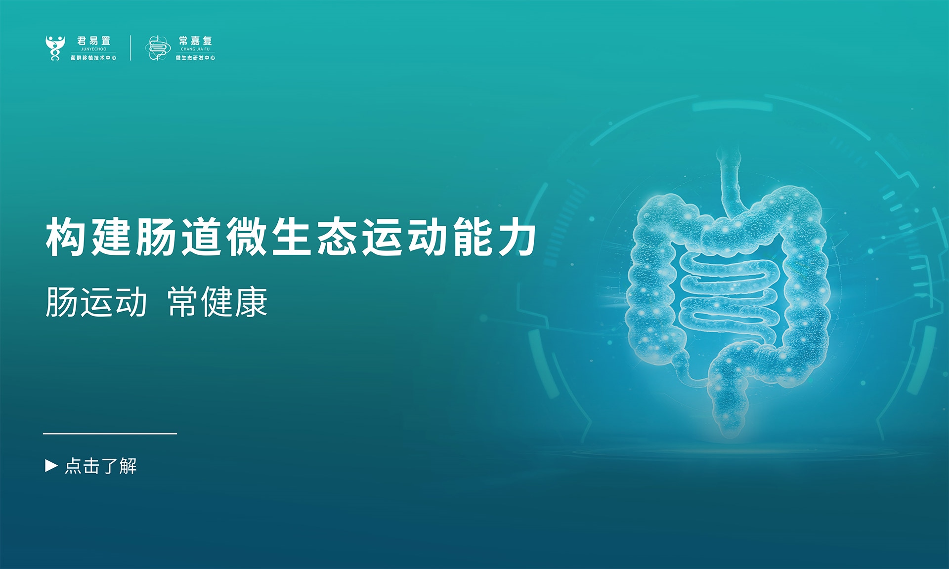 君易置生物科技是一家集臨床和基礎研究、S·FMT?運動菌群移植技術服務及微生態產品和方案研發為一體,專注于人體腸道微生態能力建設和個性化康復的高新技術企業 。公司秉承“腸運動,常健康”的核心理念,以“運動菌群舒暢輕盈”為研發邏輯,嚴選具有“運動菌群特征”的優秀供體,研發調配促進菌群定植的定植伴侶,致力于通過科學調配菌群定植配方,提升患者的腸道微生態運動能力,實現疾病預防與治療。
